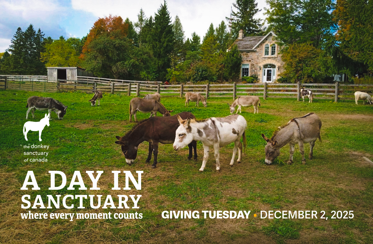 Before being admitted to The Donkey Sanctuary of Canada (DSC) in late spring 2019, Franny lived on a loving farm with horses and other donkeys in Southwestern Ontario. She was well cared for, but her owners were getting older and were beginning to downsize.