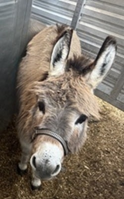 Before coming to The Donkey Sanctuary of Canada (DSC) in March 2025, Maple lived on a farm in Quebec. She had lived there since 2017. Maple lived there as a well love pet donkey, together with her children, Heather and Pippin, and another little Friend, named Forest. When Forest developed some medical issues and needed more specialized care, the decision was made to rehome the four donkeys to the DSC, so Forest could get the best care possible.