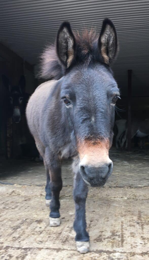 When her owner passed away the relative who inherited the estate had to make plans for Morgan as they were not able nor had the knowledge to care for this little mule that had been neglected for so long. They contacted the DSC to see if we could provide Morgan with a forever home. Morgan arrived a few days later in the summer of 2019.