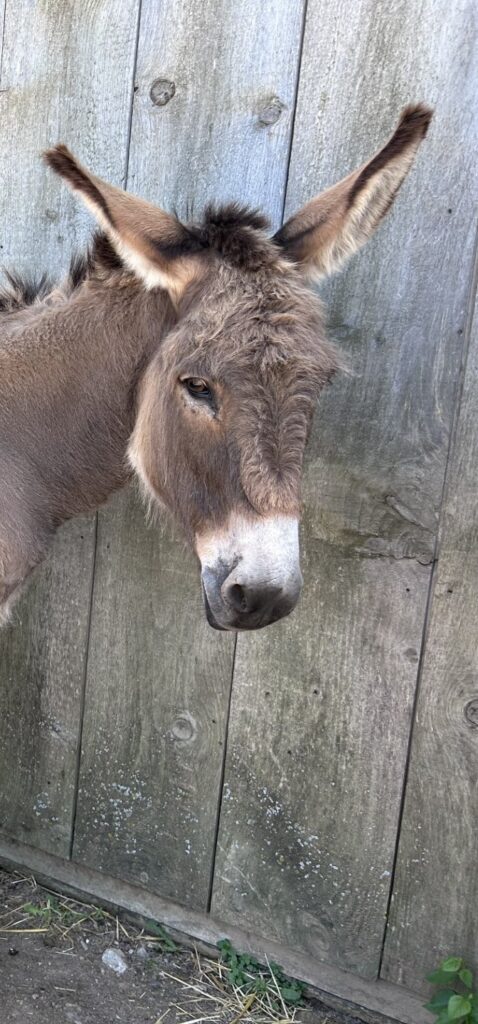 Peggy lives with contracted tendons and mechanical laminitis, which can make movement difficult at times. To help manage her condition, she was recently fitted with glue-on therapeutic shoes—only the second donkey at the sanctuary to try this innovative approach. So far, the shoes have provided noticeable relief and improved her comfort.